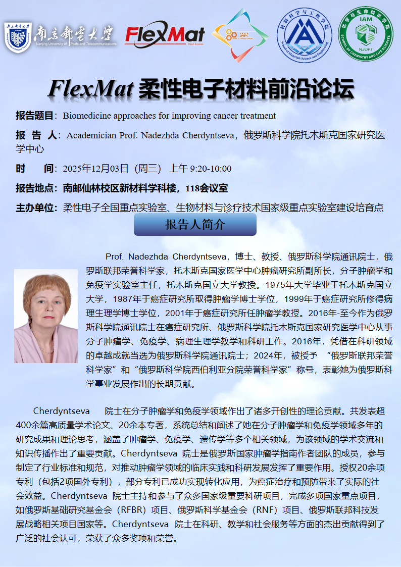 FlexMat柔性电子材料前沿论坛:俄罗斯科探花porn 托木斯克国家研究医学中心 Academician Prof. Nadezhda Cherdyntseva