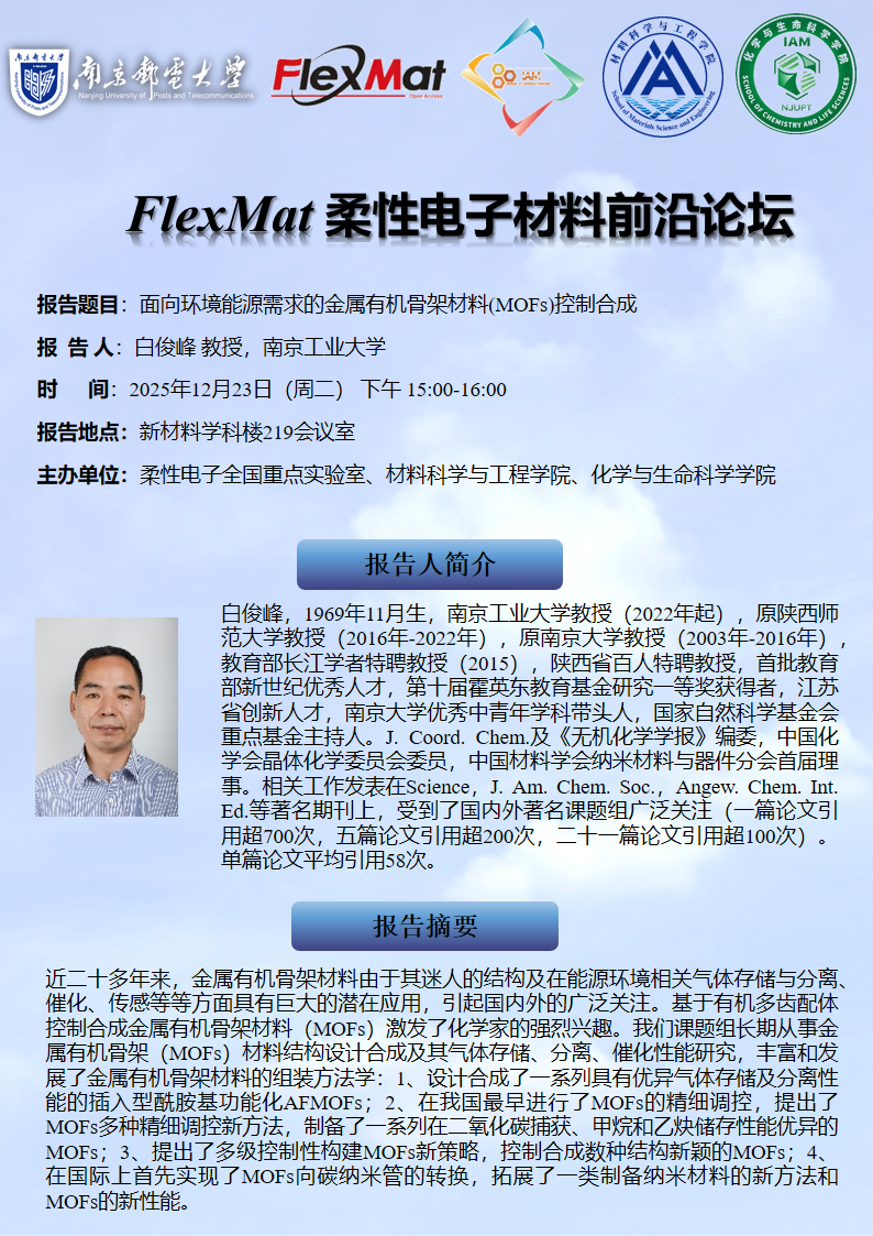 FlexMat柔性电子材料前沿论坛:南京工业大学 白俊峰教授