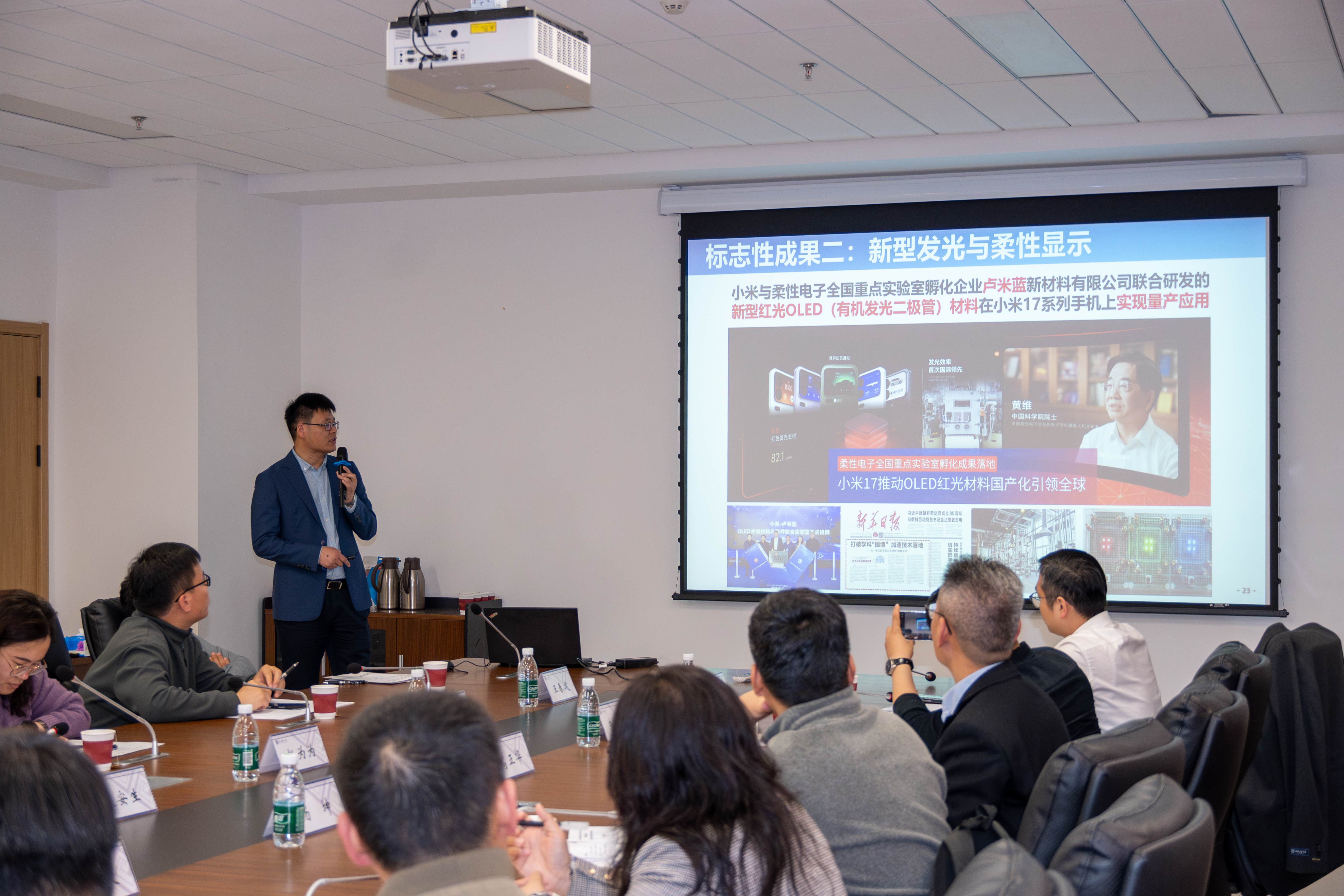 4月9日下午,由江苏省教育厅、省工业和信息化厅指导,江苏省有机电子与信息显示协同创新中心与江苏省新型显示产业联盟与共同主办,“双高协同·智创未来”新型显示江苏教育界与产业界对话对接暨江苏省新型显示产业创新研学活动,在探花porn 柔性电子全国重点实验室举行。活动由材料科学与工程探花porn 院长凌海峰教授主持。
